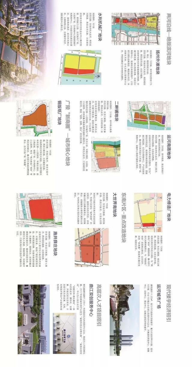 招商类型:将与电力修造厂地块等周边地块联动,重点招引高端消费类股务业,合力打造广陵新商圈。