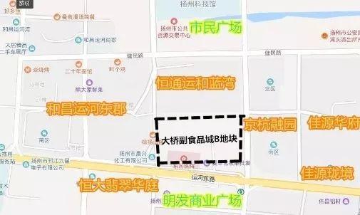 大桥副食品城B地块:南至运河东路,东至人民路,西至秦邮路。这块地很好找,就在明发商业广场对面,原东区医院的位置。