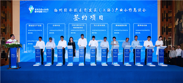 会上,上海闵行经开区与扬州经开区进行园区合作共建项目签约;台湾元太科技高端显示产业园、美国科霸生物科技等12个总投资近152亿元的重大产业项目进行集中签约。(王靖宇)
