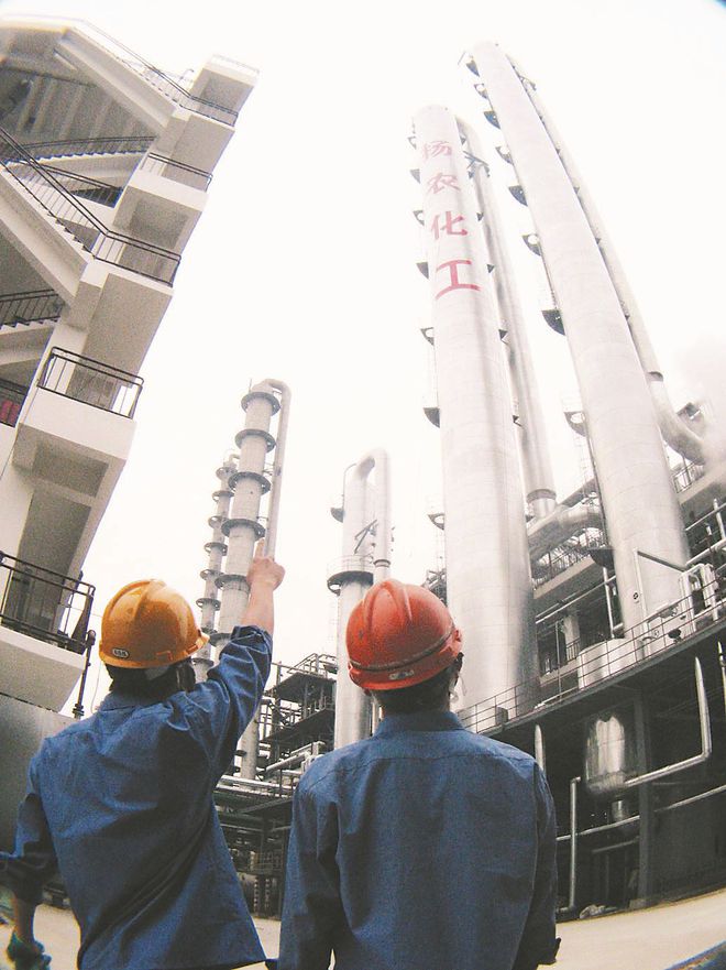 ◇2011年开始,扬农携手央企中化集团,持续深化战略合作、加强产业协同,在扬州仪征、宁夏中卫、南通如东、连云港徐圩建设新生产基地,形成“一中心四基地”的产业布局。产品也早就不局限于创业初期的烧碱等产品,二氯苯、除虫菊酯、环氧树脂、芳纶新材料等一批转型升级战略项目先后上马。